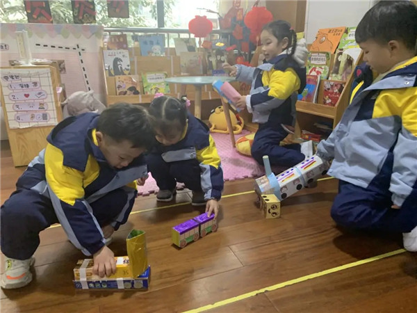 点点班的班本专题是根据幼儿兴趣点,以火车为中心展开一系列活动;伊娃班则是结合幼儿园冬季运动会的游戏开展主题活动。桑尼班以玩具车子出发,以轮胎为中心展开一系列活动;豆豆班以玩具分享作为班本专题,开展多种相关活动发展幼儿能力。课程的主体从“教师的教”转变为“幼儿的学”,立足儿童的兴趣、经验和发展需要。