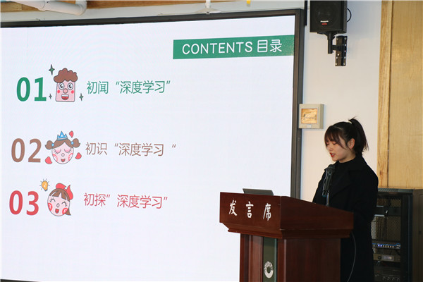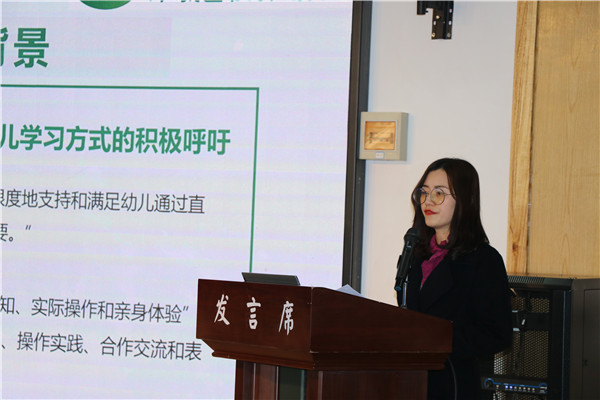 课题组成员刘诗以《与深度学习的美好相遇》为题,从研究者的角度出发,分享了自己对“深度学习”的初闻、初识和初探的心路历程,以深度学习视角,重新审视主题活动的开展和支持幼儿学习的策略,展现出深度学习这一理念带给教师的专业发展。