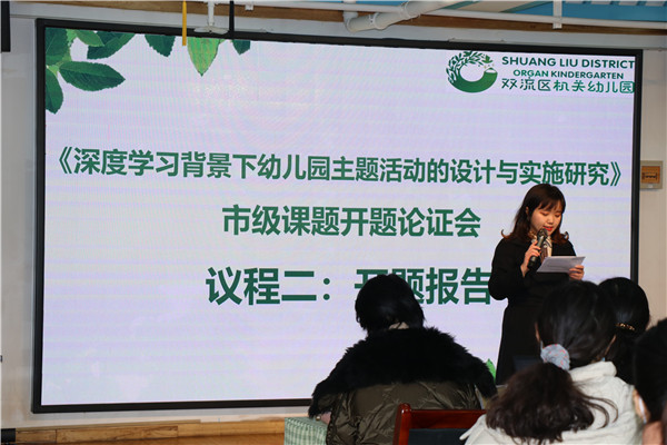 成都市教科院教研员陈军宣读立项通知书,开启了双流区机关幼儿园此轮教育研究的新征程。