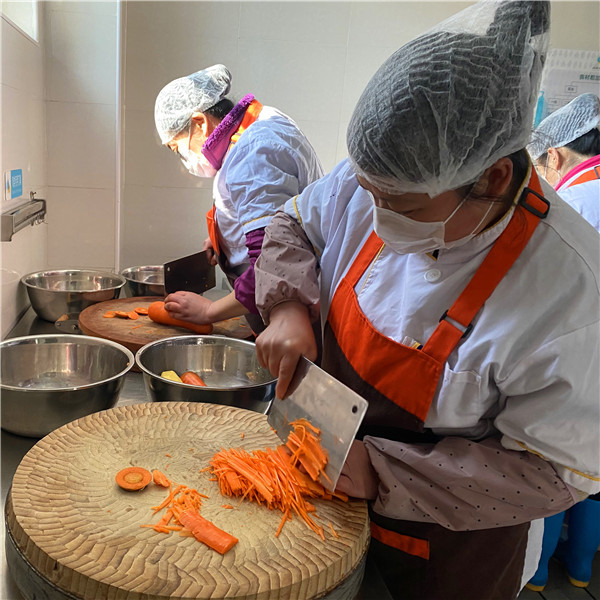 作为全园师幼的伙食官,后厨的师傅和阿姨们也不甘示弱,“刀光剑影”下,恨不能将自己的十八般武艺全部亮出来,论刀工谁与伦比!