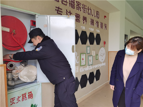为进一步加强校园安全制度管理和防范措施,2021年2月27日上午,大邑县青霞派出所胡警官一行对大邑县潘家街幼儿园进行开学安全工作检查。