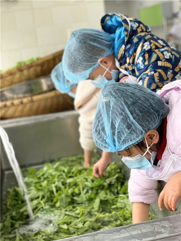 随后,孩子们还进行了分班劳动体验--户外大环境清洁护理、自然角整理、帮厨摘菜、整理体育器械……孩子们在劳动中收获了喜悦。