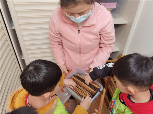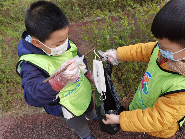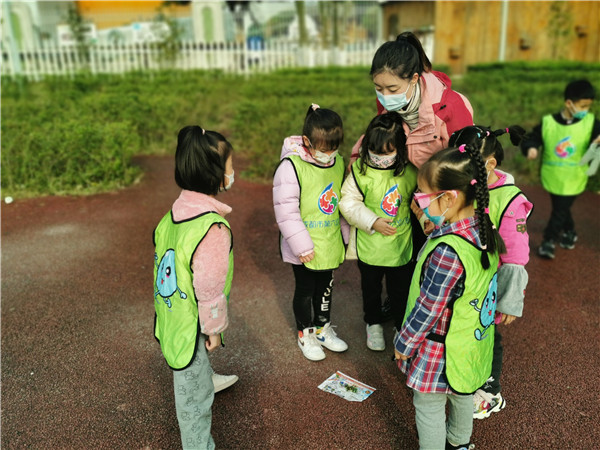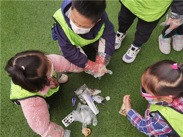 在活动中,孩子们发现公园里有许多的垃圾,几名幼儿围绕在垃圾旁,激烈地讨论了起来“我们应该把它放回垃圾桶”“可是很脏,我不想用手拿”“不知道垃圾桶在哪里呢?”“太多细菌了,不能用手去捡。”小六仔“变身”“小雷锋”,探索出各种办法来解决……