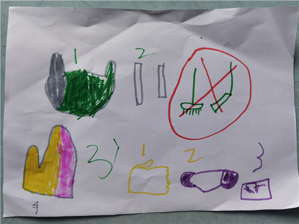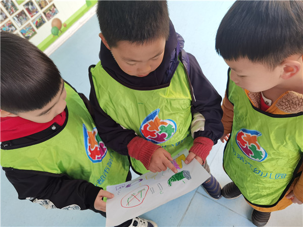 用什么办法才能不用手快速捡起垃圾呢?小组讨论办法多。孩子们有了自己的工具图,然后和朋友一起去寻找工具和材料。