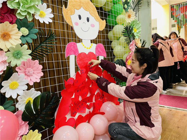 彭丽园长为女性教职工们带来了节日的祝福。幼儿园设计了“大比拼”的游戏,老师们需要通过游戏获得自己心仪的书籍,老师们都利用自己灵活的大脑、灵敏的反应获取了胜利。