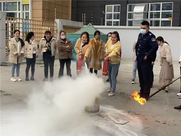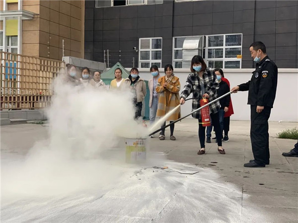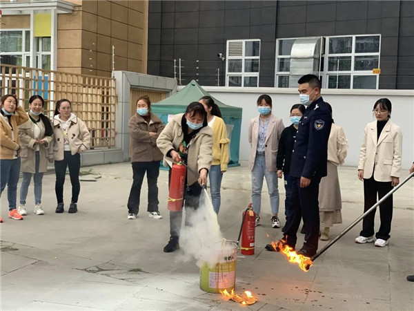 最后,刘教官向大家演示了灭火器的正确操作方法,并指导大家进行实际操作,让教职工们切实感受到了正确使用灭火器的重要性。