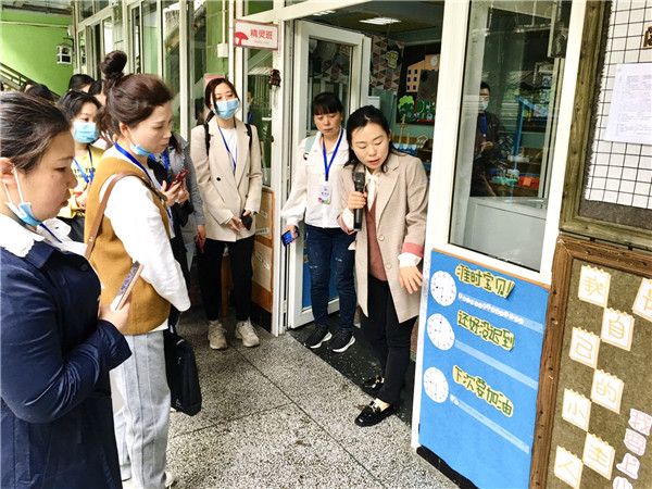 随后,学员们走精灵班、乐乐班、花园班,聆听张晓明、鞠晓欧、郑苏三位班长教师介绍在班级教育环境创设中,分析与解读大班幼儿年龄特点与学习特点,挖掘班级幼儿学习兴趣生成与推进班级共构活动,支持幼儿的探索与学习,智慧创设班级教育环境的思与行。