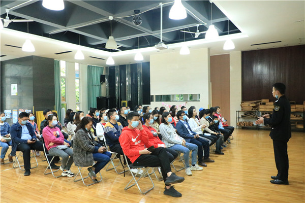活动开始前,家长们接受常用消防知识培训及演练准备、注意事项讲解等,教会家长们如何做好针对孩子消防安全意识传达、认真上好安全教育第一课。