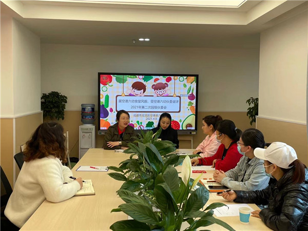 作为幼儿和教师的供餐场所,幼儿园食堂是幼儿园重要的职能部门,也是家长们非常关心的部门。为了让家长了解成都市双流区空港第六幼儿园食堂的整体风貌,知道幼儿园食堂布局和操作的规范性,搭建有效的家园沟通平台,成都市双流区空港第六幼儿园于2021年4月8日邀请班级伙委会成员在会议室组织召开了2021年第2次园级伙委会,本次伙委会的主题是展现幼儿园食堂操作的规范性。幼儿园园长王欣,食堂相关负责人涂华婷、龙玲慧、高晓静,办公室负责人陈亚琳,保教办负责人余玲参加了此次活动。