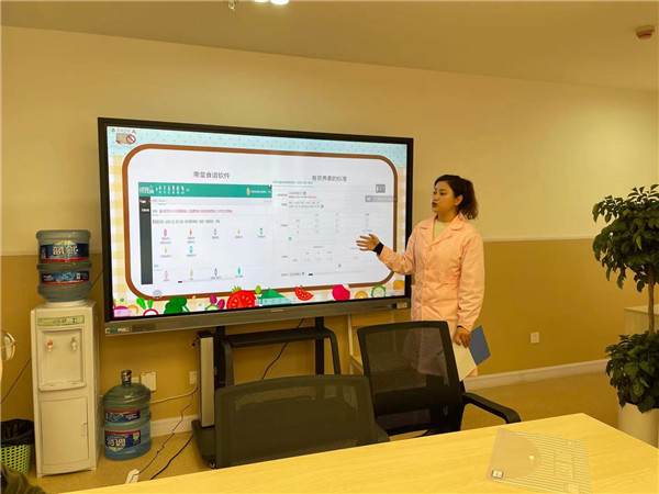 活动一开始,幼儿园园长王欣表达了对前来参与此次活动的伙委会成员的感谢,并介绍了幼儿园食堂卫生、人员配置、食品采购等要求以及幼儿园幼儿伙食费的开支情况。紧接着,幼儿园食堂分管负责人涂华婷介绍了食堂的相关负责人、工作人员的情况及具体的工作职责,结合图片详细解说了幼儿园食堂布局和每日的操作流程。而后幼儿园保健医生介绍了幼儿园食谱制定的过程,并结合带量食谱介绍了幼儿菜品搭配、配量的科学性以及菜品的营养价值。