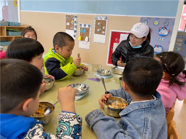 为了让家长真切感受幼儿园食堂的操作流程,幼儿园相关负责老师陪同伙委会成员参观了解了幼儿园厨房明厨亮灶的监控、食品展示栏,了解食堂以及食材真实的情况。在幼儿进餐时,伙委会成员走进班级,了解班级餐前准备的卫生消毒、餐具准备、幼儿卫生准备等情况,并陪同班级幼儿一起品鉴了幼儿的午餐,真切感受了幼儿餐食的味道、粗细、软硬等情况。