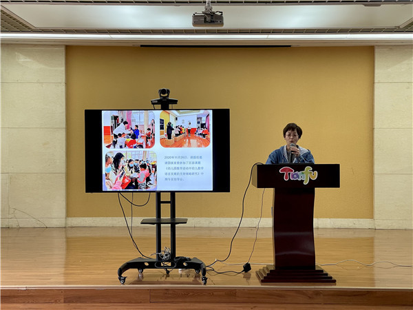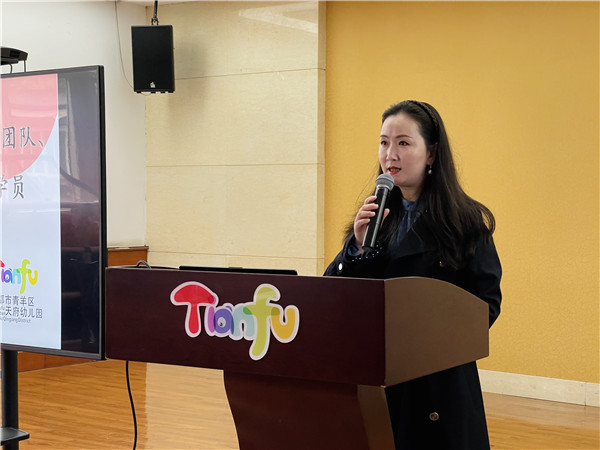 园长领航班学员、青羊区天府幼儿园园长陈思宏介绍会议背景、参会人员和会议议程