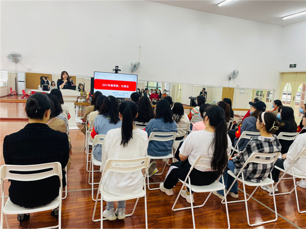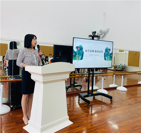 本次会议主持人是保健医生张老师,她为家长们介绍了本次会议的流程。会上,集团园长赖老师向大家讲解了幼儿园顶层文化及园务工作重点,帮助大家更加了解二十七幼的发展情况。