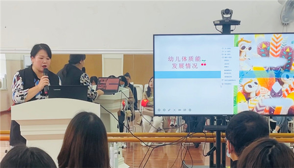 集团副园长邬老师向大家分享了上学期活动小结及本学期教育教学工作重点,让家长代表们初步了解二十七幼的园本课程——民间体育游戏、课题,以及幼儿园的科研活动与幼儿身心全面发展的联系。