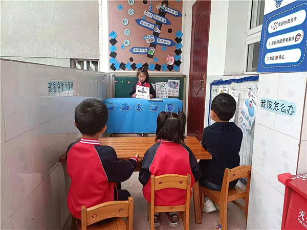 大班组教师结合“我要上小学”主题进行环境创设,引导幼儿参与环境创设的全过程,让幼儿在主题探索中做好成为小学生的心理及能力的准备。