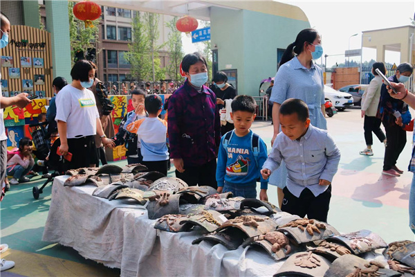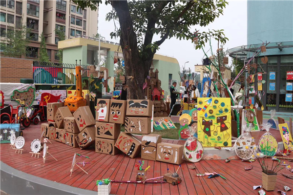 本次作品展,两所园区分别从“子想纸玩”“遇见童心,邂逅童画”两个主题开展。展出的作品充分利用各种纸张、废旧椅子、自行车、瓦砾等物品。孩子们用自己的童心和画笔,通过创意涂鸦、乐享绘画、手工、拓印等形式,呈现出稚嫩却又生动的作品。五彩斑斓的作品把整个幼儿园点缀得熠熠生辉,也吸引了家长驻足观赏。