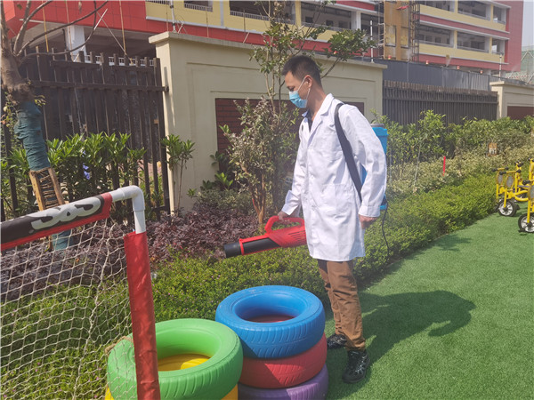 为进一步做好新冠肺炎疫情防控,预防夏季各种传染病的传播,切实保障全园师幼的健康。成都市双流区怡心第三幼儿园于2021年5月1日聘请成都卫博士科技有限公司的专业工作人员对幼儿园内的各个角落进行全方位、无死角的环境卫生消杀工作,全力营造安全、卫生、健康的幼儿园环境。