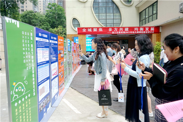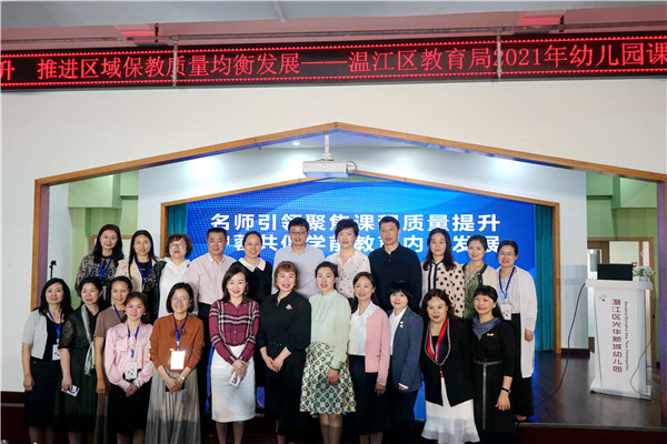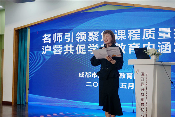 为进一步贯彻《成都市幼儿园课程建设与管理指导意见》精神,着力提升区域学前教育质量,共享课程构建经验,在温江区教育局“温江区学前教育课程质量提升行动研究项目”的推动下,2021年5月7日,“名师引领聚焦课程质量提升 沪蓉共促学前教育内涵发展”主题研修活动在温江区光华新城幼儿园举办。
