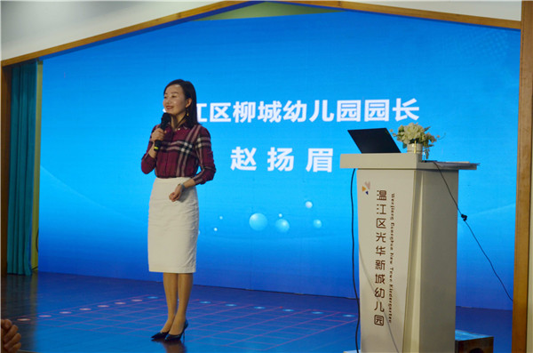 成都市温江区柳城幼儿园园长赵扬眉作了一场主题为《回归课程改革的原点》的精彩汇报,分享中聚焦让园本课程追随儿童,遵循儿童成长节律的探索,以项目课程的实践为突破口,作为优化幼儿园园本课程建构与实施的路径,实现了以项目课程的实施促进教师课程领导力的提升成效。