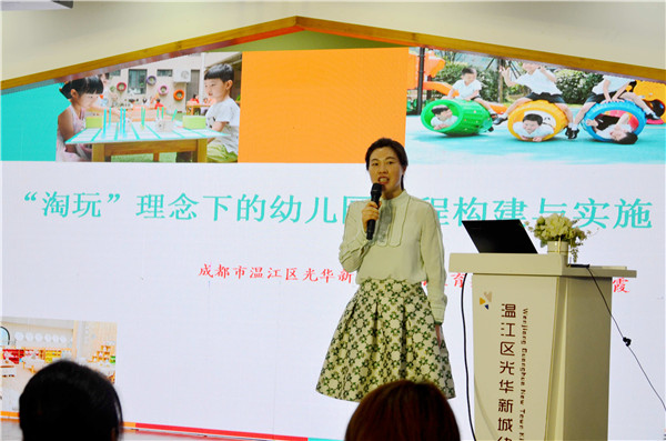 成都市温江区光华新城幼儿园教育集团园长樊朝霞以《“淘玩”理念下的幼儿园课程构建与实施》为题,向大家介绍了光华新幼集团灵动课程建构与实施的“五个一”路径,通过厘清一个顶层规划、建一套保障制度、做实一串教研活动、开展一系列课程实践、探寻一场课程收获,集众智、汇众力,在课程质量提升项目中,探索出更多有利于儿童与教师共同成长的持续发展之道,推动幼儿园走向高品质发展。