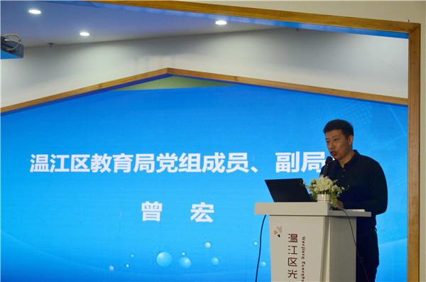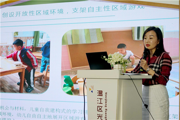 温江区教育局党组成员、副局长曾宏在致辞中提到:希望通过此次互动和专家指导,温江学前教育力争在课程建设探究之路上,共研共享、共思共进,做课程建设的攀登者,坚持内涵提升,凸显高品质发展的新优势,赋予“学到温江”教育品牌更专业的力量、更精良的品质。