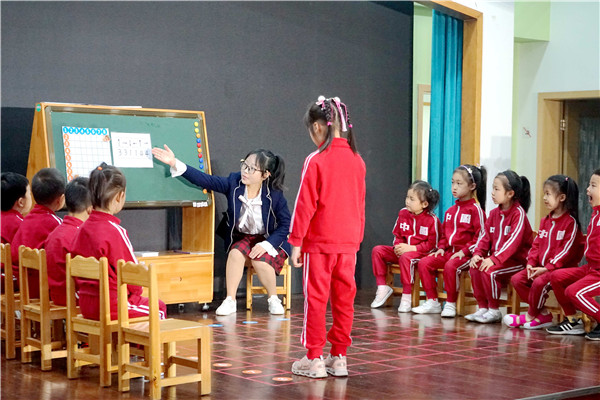 温江区光华新城幼儿园青年教师李巧展示了大班数学活动《小熊找家》,通过创设小熊找家的情境,以问题串引幼儿理解思考、分析问题及解决问题,灵活运用等待、鼓励、追问等方式帮助幼儿凝练经验,让幼儿在游戏中产生学习,生发参与活动的兴趣。