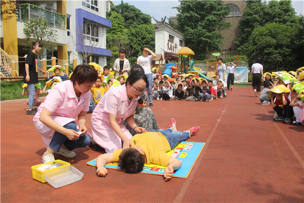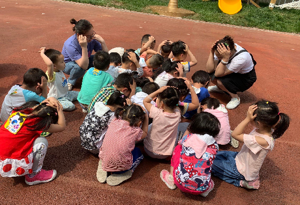 为提高全园师幼的应急避震能力,增强全园师幼的防震意识,确保全园在地震、急救的突发情况下,能安全、有序、快速地撤离,2021年5月11日下午,成都市金沙幼儿园组织开展了地震、急救疏散演练活动。