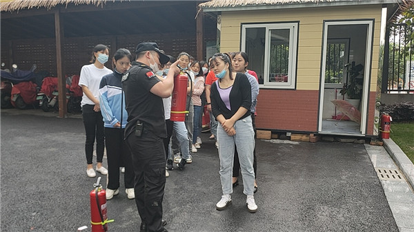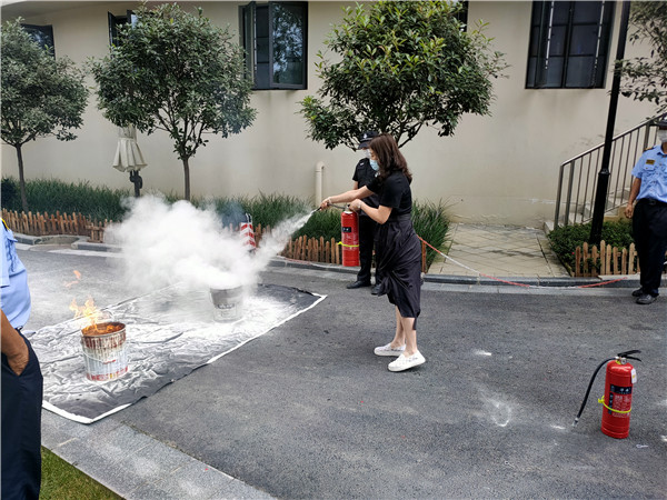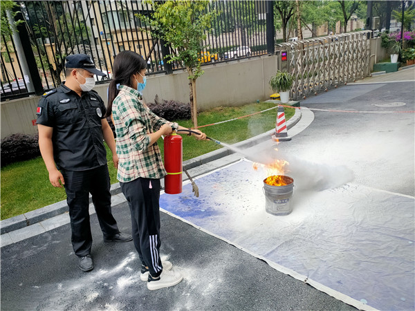 6月8日,行政人员、食堂人员、物业人员逐个进行灭火器使用。