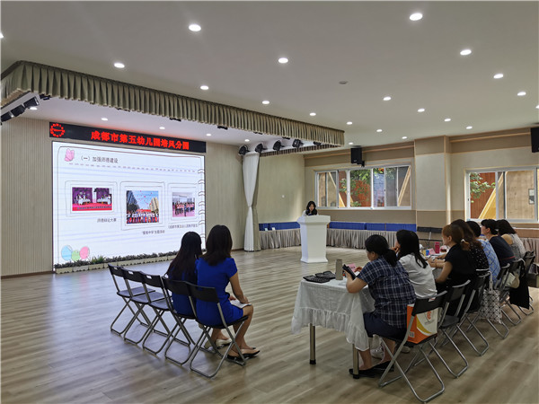 2021年6月22日上午,在成都市第五幼儿园教育集团总园长闵艳莉的陪同下,由成都市青羊区教育局副局长徐琨、青羊区教育局幼教科科长高丹、青羊区教育局学前教育科柳老师、成都市第一幼儿园园长司茜、金牛区机关第二幼儿园总园执行园长李瑾、成都军区机关第二幼儿园园长付琳、西部战区机关幼儿园园长刘玉、成都市第三十三幼儿园园长王亚利等组成的专家小组,莅临成都市第五幼儿园培风分园(以下简称:五幼培风)进行了成都市一级园评估视导工作。
