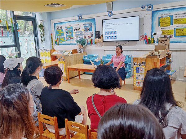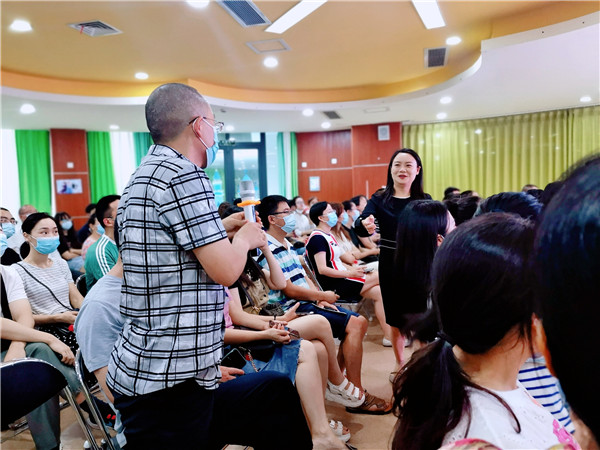 刘文欢主任结合《中间商,赚差价》《被子的旅行》《擦水记》等活动精彩瞬间,展现每一位教师用心去想、用心去做、用心去爱,让每个孩子获得发展的历程。代浩力老师结合小班幼儿入园实际情况,详细介绍了什么是入园焦虑,如何缓解入园焦虑等;后勤郭老师和保健医生李医生,从安全角度出发,讲述着幼儿园食谱、家长护苗队、安全演练等等,让家长们感受到安全的重要性;班级教师从暑期作息时间调整、安全出行等方面,让刚刚相识的大家慢慢熟悉。