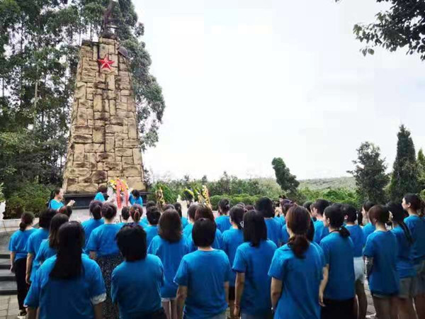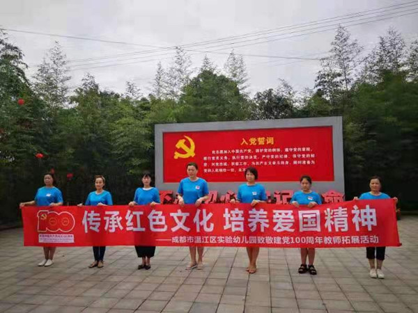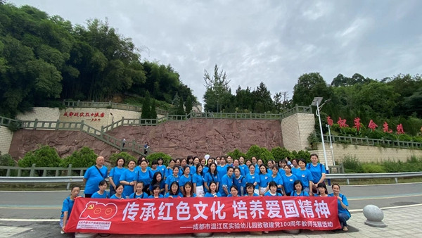 7月8日,全体教师参与了蒲江成都战役纪念馆以及烈士园林的红色党建活动。上午8时,全体教师从幼儿园乘坐大巴车出发前往位于蒲江县西来古镇的成都战役纪念馆。在解说的带领下,教师们了解了在成都周围发生的解放战争历史事件,学习了革命烈士的红色革命精神,感受到共产党员们留下的不屈意志。随后,党员教师前往成都战役纪念馆烈士园林祭拜了在战争中牺牲的战士。最后园长带领入党教师参加了庄严的党员宣誓仪式——牢记使命,不忘初心,永不叛党。