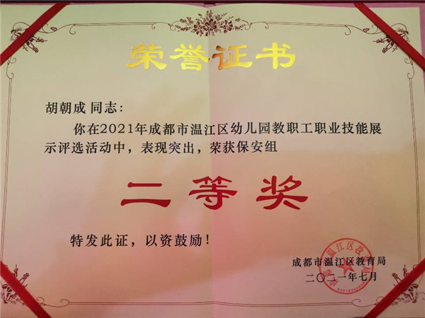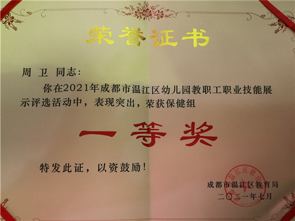 孩子是祖国的未来,是民族的希望,为全力保障幼儿身心、身体的健康成长,提高幼儿园综合教育服务水平,充分展示每个岗位的专业技能,温江区实验幼儿园积极参加了由温江区教育局主办的《温江区幼儿园教职工职业技能大赛》,整个大赛分为“保健医生技能比赛”、“保育组技能比赛”、“厨师组技能比赛”以及“保安组技能比赛”,每项赛事由专业评委组进行评分。