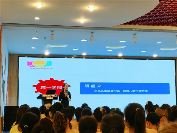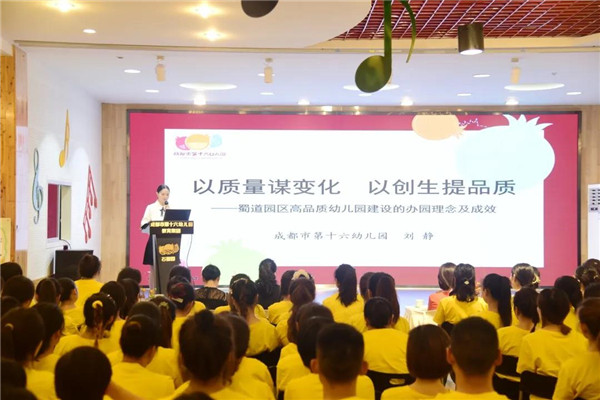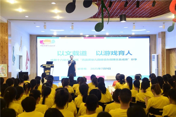 为增强团队文化凝聚力,促进园所文化的传承和创新,7月9日,成都市第十六幼儿园(以下简称:成都十六幼)教育集团召开集团职工大会,一园四区教职工参会。会议为期一天,分幼儿园游戏历程介绍、荣誉介绍、园区理念及成效介绍、专题培训《如何做高品质的十六幼人》四项流程。