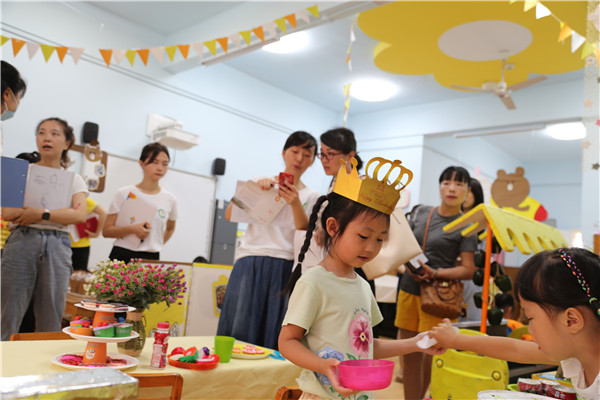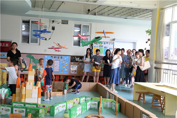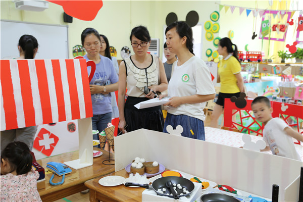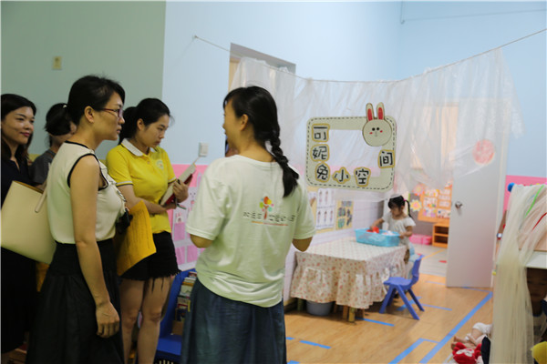 老师们观摩中班组区域游戏