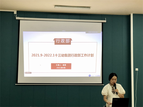 集团副园长梁荷介绍了行政部工作计划。幼儿园将以党建工作为引领,以督导工作为抓手,以素养工作为核心,促进各项工作发展,提升团队综合能力。