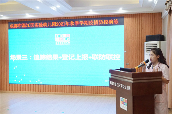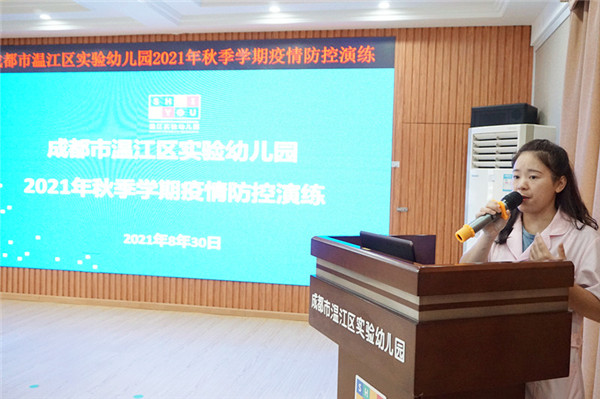 为做好开学准备工作,保障全体教职工及幼儿健康,落实温江区教育局、区疾控中心的防疫要求,温江区实验幼儿园于2021年8月30日上午9点在三楼会议室进行了秋季学期防疫演练,并邀请健康副校长、温江区柳城街道卫生服务中心高科长、柳城街办社区教育学校魏校长参与指导本次演练。
