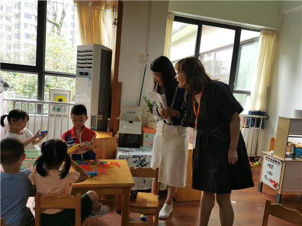首先,副园长王珊分别向陈督学汇报了开学初期幼儿园各方面工作落实开展情况。王副园长从校园环境整理、教职工上班规范、防疫工作、安全工作、招生收费编班、保教常规以及本期重点课程和课题等几方面进行了汇报,陈督学认真聆听,仔细记录,不时询问,从而了解了光华新城幼儿园开学之初的整体情况。