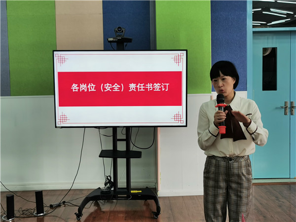 紧接着,在翔润园执行园长甘东梅的带领下,老师们签订了安全责任书。甘园长对于签订安全责任书的必要性和具体事宜进行了详细说明,带领全体教职工一起学习了安全责任书的相关条款并进行解读。要求大家在以后的工作中要严格落实学校安全工作责任制,牢固树立“安全第一、预防为主、孩子至上”的思想,积极排除一切不安全隐患。