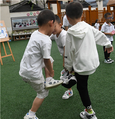小班段开展了“亲子月饼大调查”活动,让孩子在对月饼展开调查时,发展社会交往能力、口语表达能力和观察力等,同时感受全民迎中秋的气氛;中班段制作中秋手工作品;大班段则通过传统游戏让孩子们感受节日气氛。