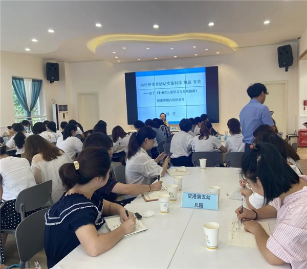 9月22日上午,空港第五幼儿园及五所姊妹园认真聆听了全国幼儿健康领域研究知名专家郑艺教授的《如何使体育活动实施科学、规范、有效》理论讲座。在讲座中郑教授提出体育活动的开展需要有“3+1”的目标和五条原则。