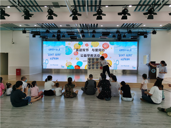 为推动早期教育进入家庭,成都市第十八幼儿园(以下简称:成都十八幼)于9月25日在总园多功能厅开展了以“喜迎双节 与爱同行”为主题的公益早教活动,旨在通过亲子互动、交流指导等方式为社区0-3岁婴幼儿父母等养育人员提供科学的育儿指导服务。