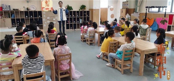 又是一年新霜初上,又到九月初九重阳佳节。成都市双流区实验第一幼儿园的孩子们围坐在一起,听老师讲着重阳节的来历和意义。