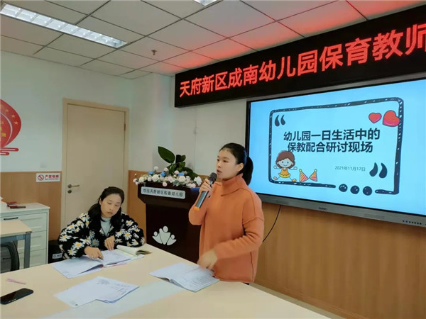 为切实提升幼儿园保教配合质量,强化保育工作的规范要求,11月17日,四川天府新区成南幼儿园对保育教师进行了保教配合方面的培训。