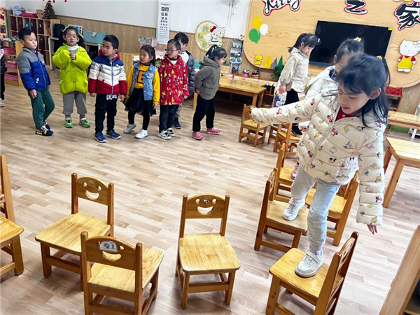 成都冬天的天气不太好,既要保证幼儿的安全又要满足幼儿的活动时间,成都高新区世纪城幼儿园大二班的老师和小朋友们开动脑筋,开始了各种室内体育游戏的探索。