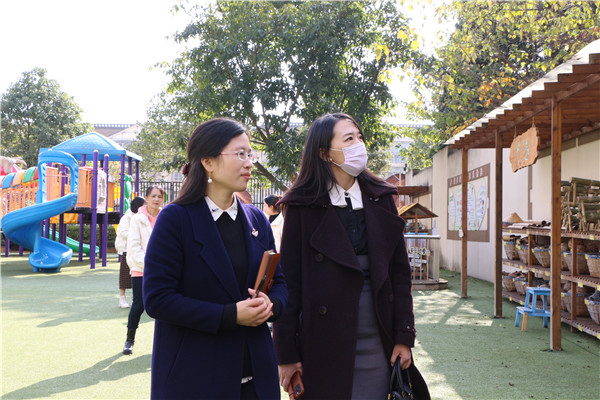 首先,胜利幼儿园园长巫小芳和其他管理干部对李娟园长的到来表示了热烈的欢迎,巫园长向李园长详细介绍了幼儿园基本概况、办园理念、校园环境、课题研究、课程建设等。随后,在巫园长的带领下,参观了“四趣”材料区、创意区、班级环境、科学发现室、花果园。
