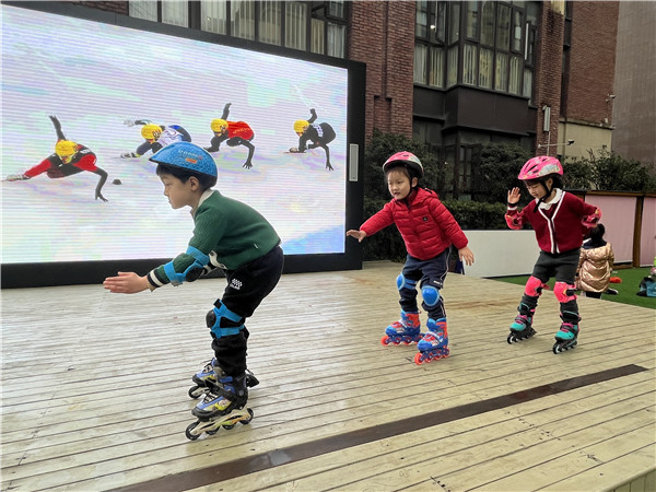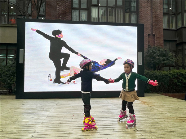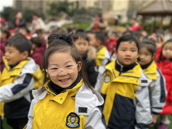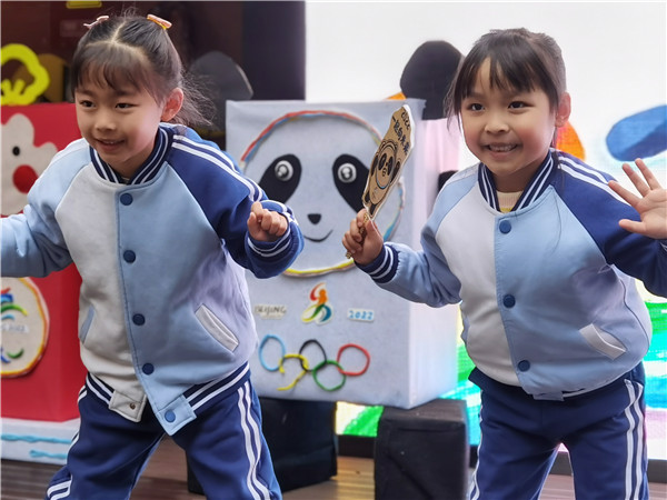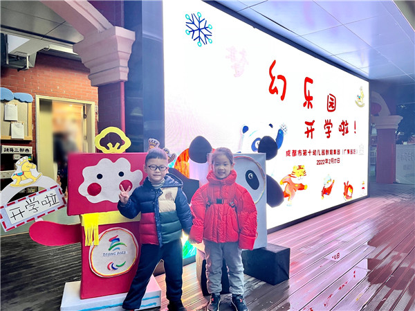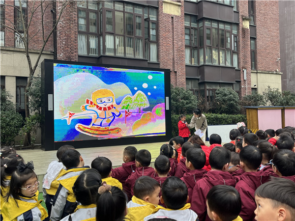 当冰墩墩、雪容融遇见蓉宝,富有激情的表演就此展开。歌曲《一起向未来》和《成都等你来》、体育项目展示《大运成都》、情景剧《筑梦运动》、啦啦操《梦想齐飞翔》、宣传片《奥运我知道》……三个园区的小朋友们用自己的热情扫除了天气带来的阴霾,为新学期新起点助威鼓劲。