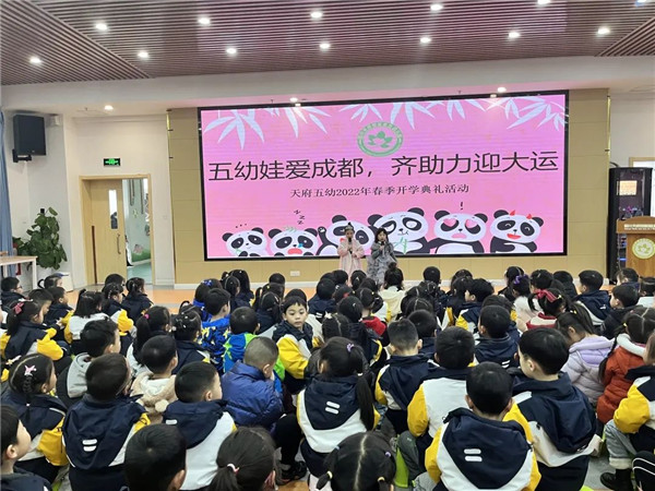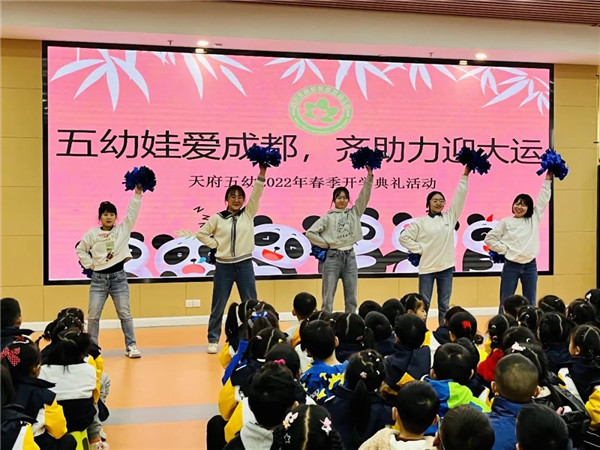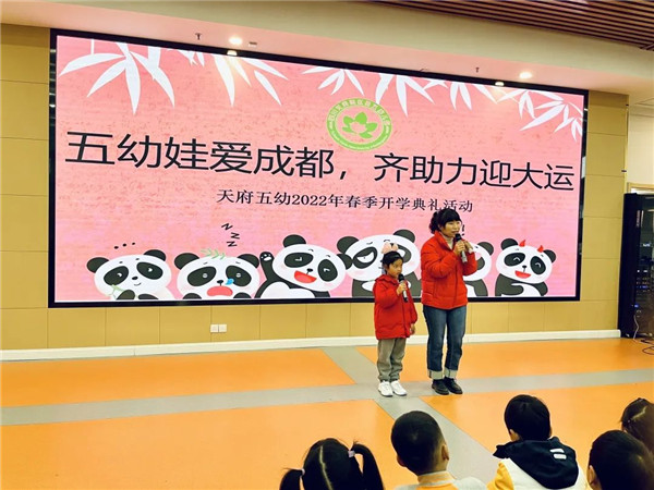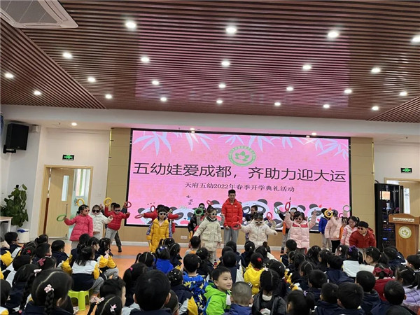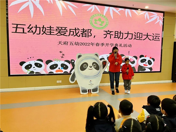 为响应成都大运会“绿色、智慧、活动、共享”理念,让孩子们进一步了解冬奥文化,让幼儿体验运动乐趣,四川天府新区第五幼儿园(以下简称“天府五幼”)于2月17日开展“五幼娃爱成都,齐助力迎大运”开学典礼。