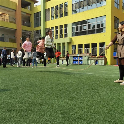 各个年级组教师们轻盈如燕,一个接着一个的身影灵活穿梭在一条大绳之间,摇绳老师同样毫不逊色,铆足劲儿抡着大绳,大家把团结协作、顽强拼搏的体育精神诠释得淋漓尽致。
