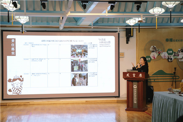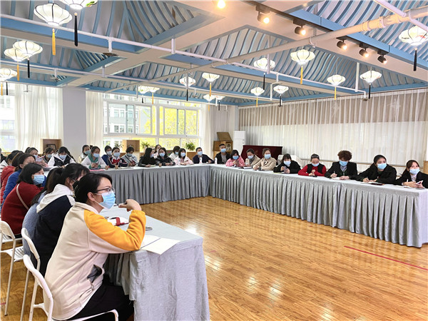 在接受门卫严格的查验、亮码、消毒、登记后,姊妹园所的参观者们进入花园园区。正值师生全员核酸检测,大家观摩了快速有序的整个环节,校园高效的防疫安全管理及整洁美丽的校园环境给大家留下深刻印象。在防疫资料的现场查阅中,双流区机关幼儿园详细完善的各类台账登记,数据的精准摸排,规范的防疫资料留存也受到大家的好评。最后,后勤办就该园在常态化防疫工作中的经验和亮点以PPT的形式同大家分享,并和老师们互动,为防疫工作怎样高效开展进行探讨。