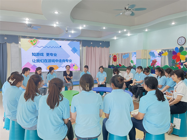业务园长张云以谈话的方式引导教师对“沙水活动”再思考、再认识。教师们也各抒己见,阐述着“沙水活动是什么”。